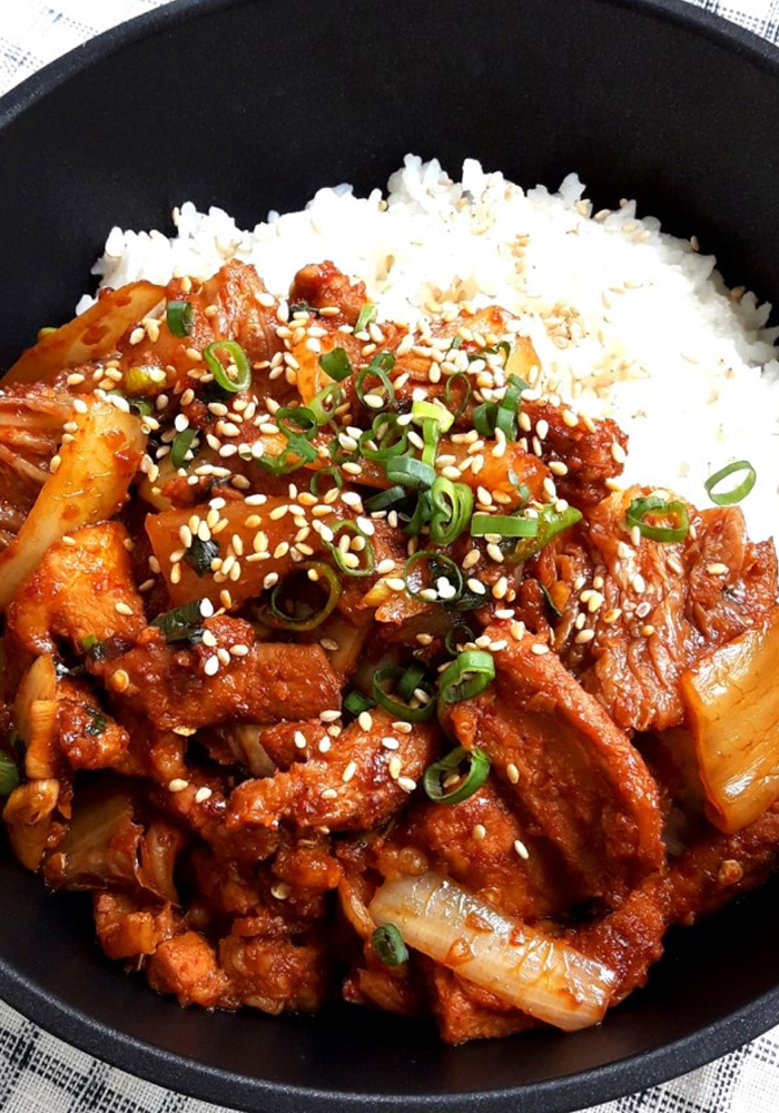 Deopbap signifie littéralement «riz couvert» et est un bol de riz surmonté d’une sorte de garniture.